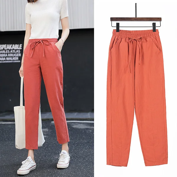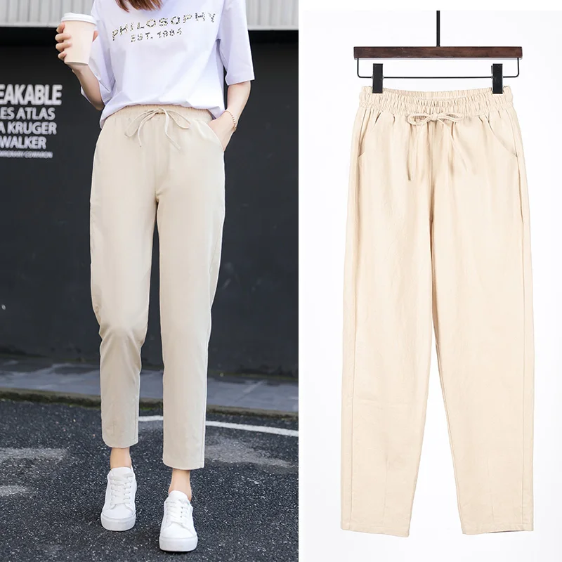 سراويل حريمي قطنية أحادية اللون للنساء ، خصر مرن ، ألوان الحلوى ، سراويل نسائية ، أزياء غير رسمية ، الربيع ، الصيف