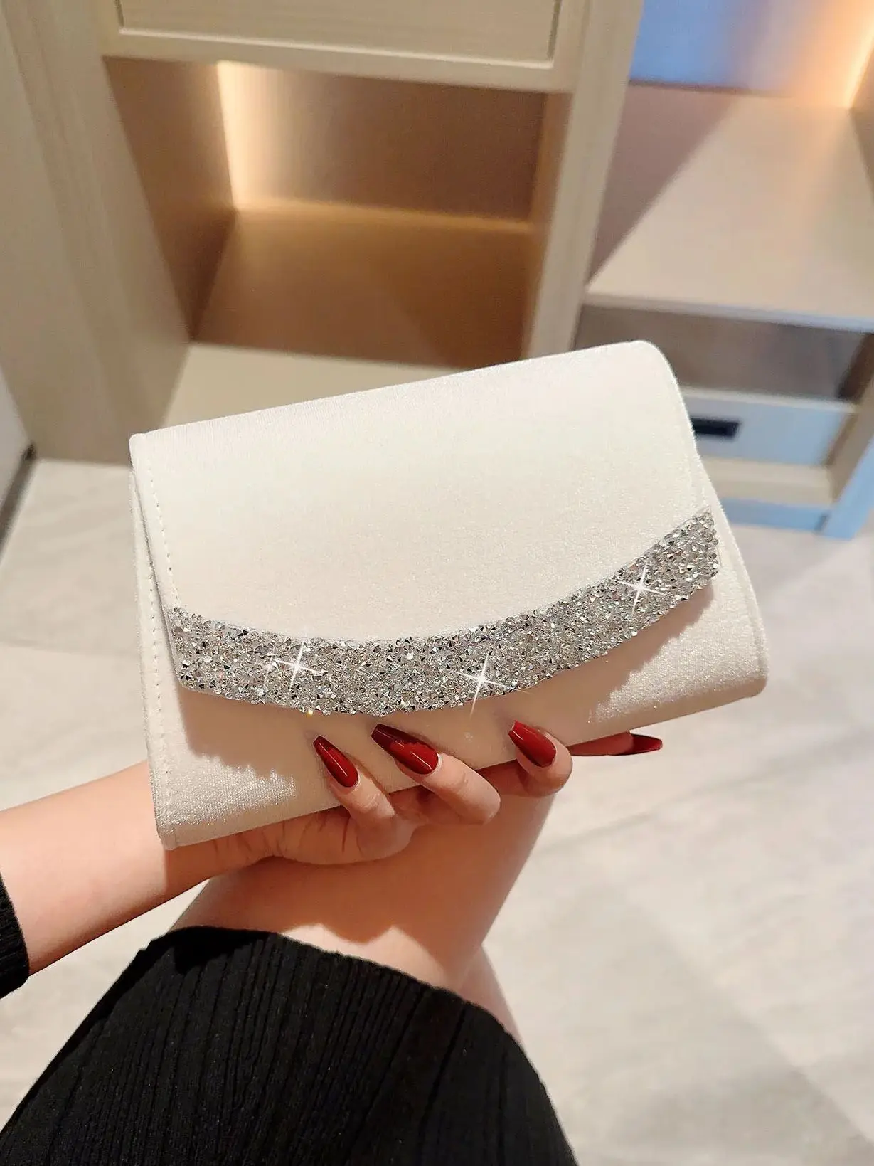 لامعة حجر الراين المخملية مساء حقيبة على شكل فستان اليد مساء حقيبة رومانسية بيضاء حقيبة الزفاف مأدبة حقيبة الزفاف حقيبة سلسلة حقيبة حفلة رسمية حقيبة حفلة موسيقية حقيبة مغلف حقيبة