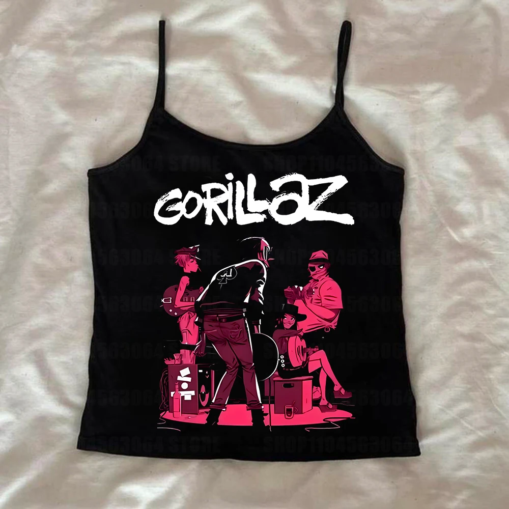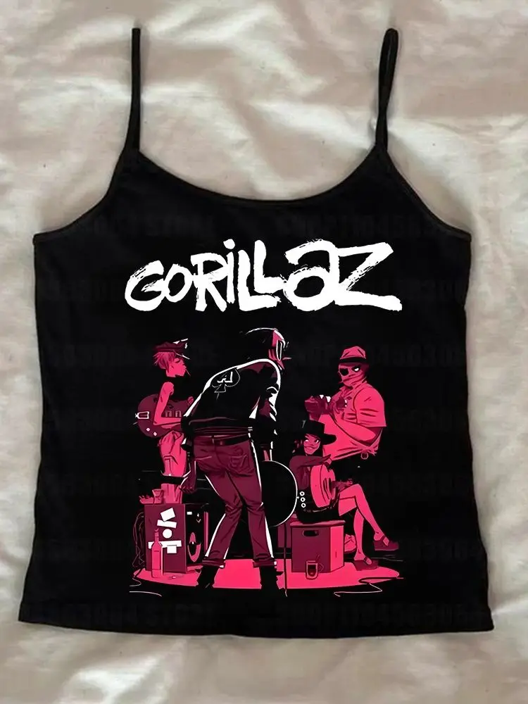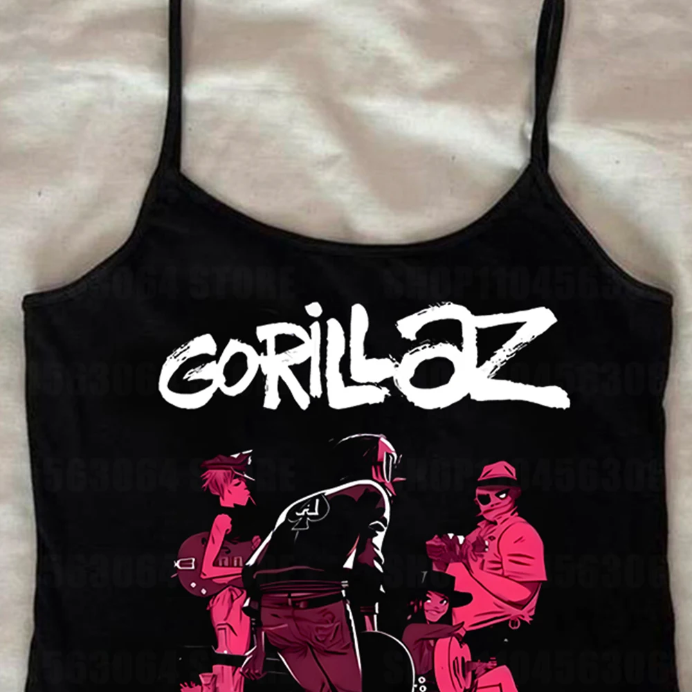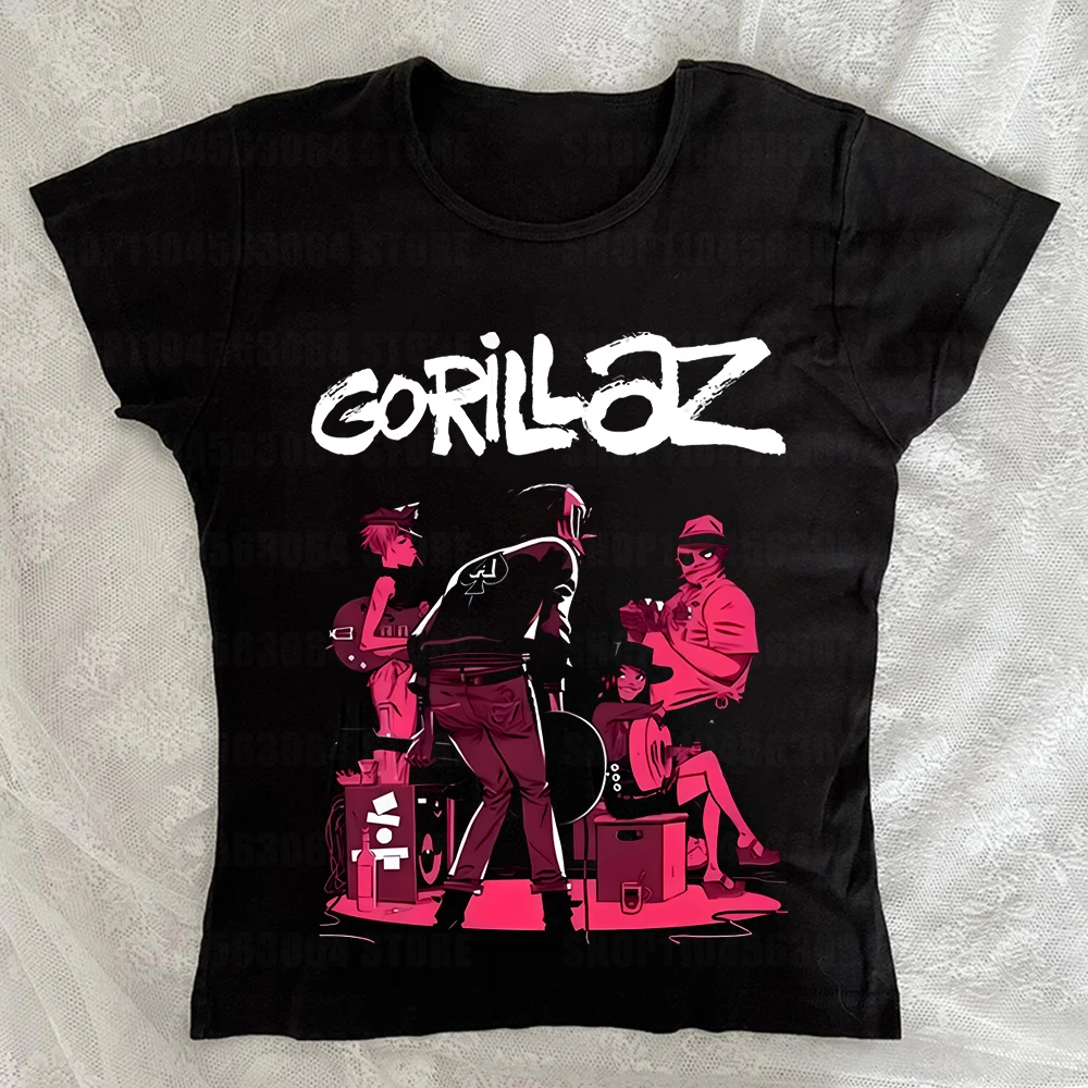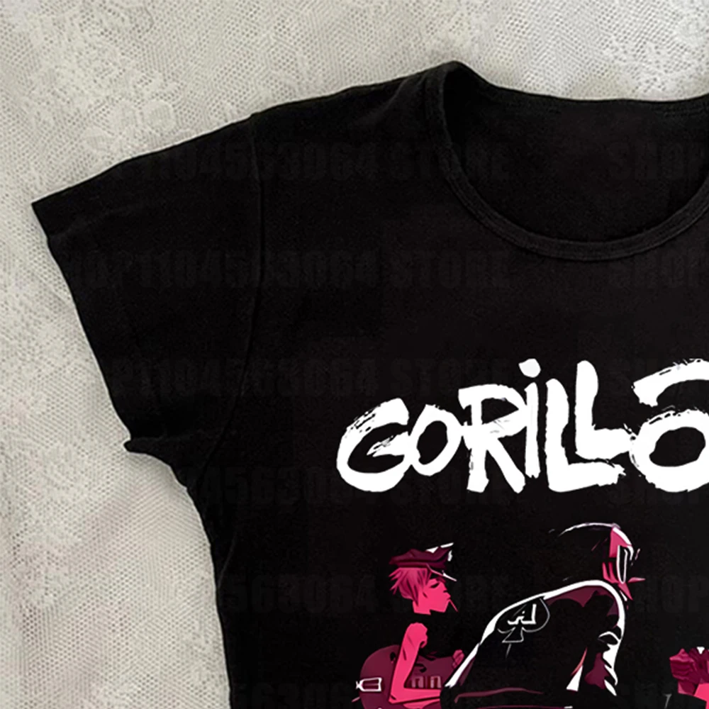 تي شيرت مطبوع عليه فرقة الموسيقى Gorillazs Punk Rock 90s موضة غير رسمية بأكمام قصيرة مقاس كبير ملابس علوية للجنسين جرافيك Y2k ملابس نسائية