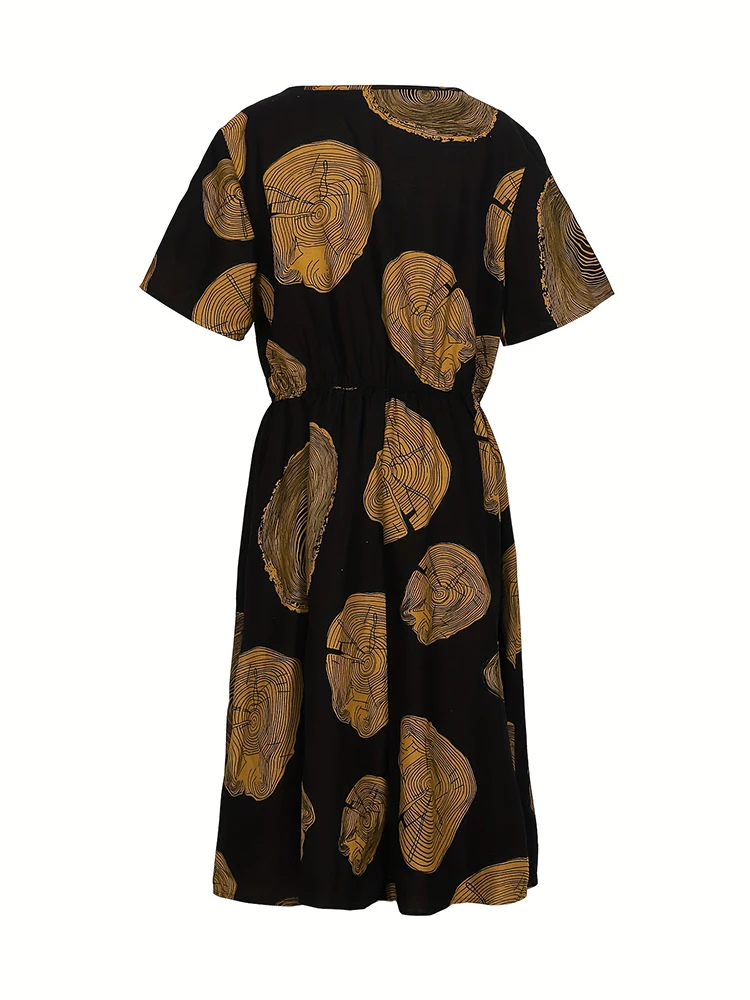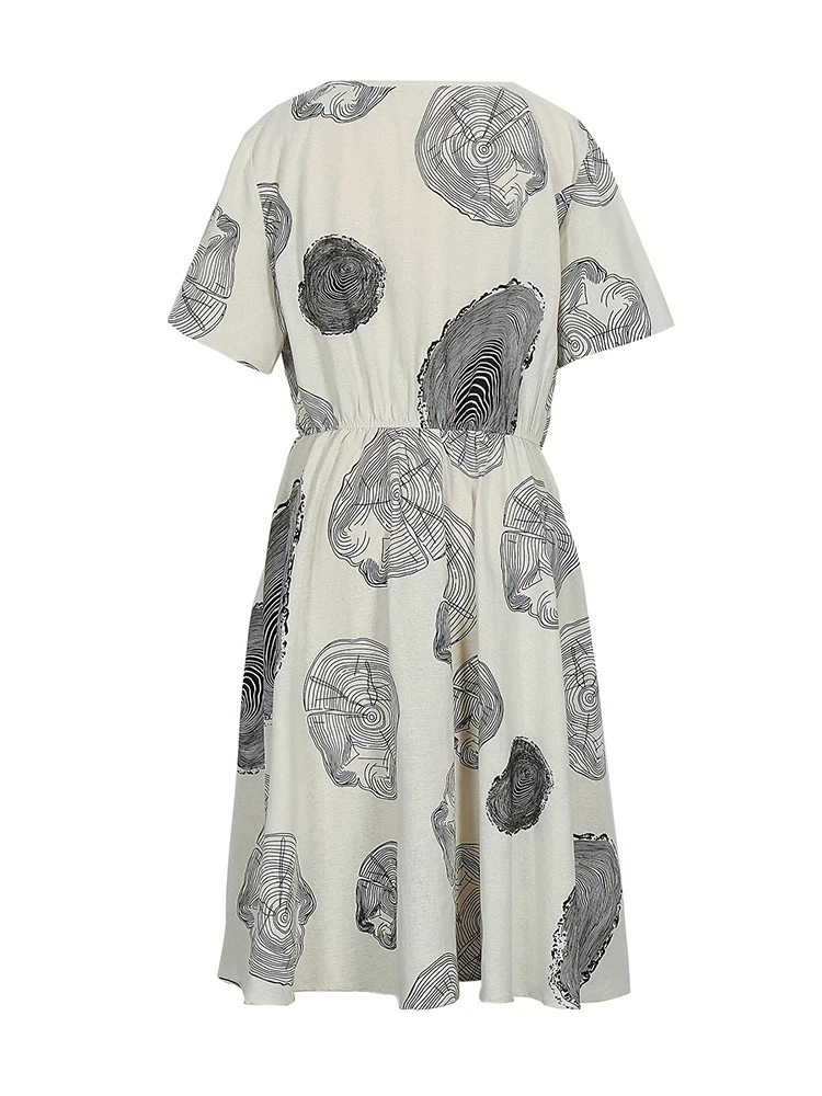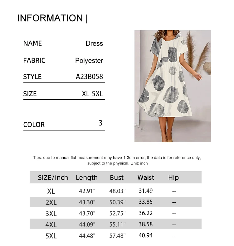 فستان نسائي غير رسمي فضفاض ، ياقة مستديرة ، كم قصير ، نمط غير منتظم ، مقاس كبير ، الربيع والصيف ، جديد ،