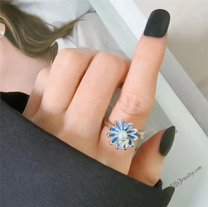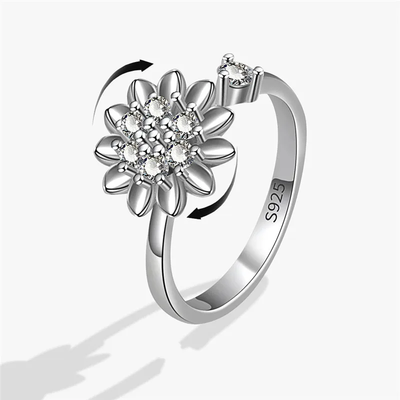 خواتم القلق قابل للتعديل للنساء والفتيات ، مجوهرات الاصبع ، الغزل ، الشمس ، اليعسوب ، زهرة ، زهرة ، تململ ، الزفاف ، الفاخرة