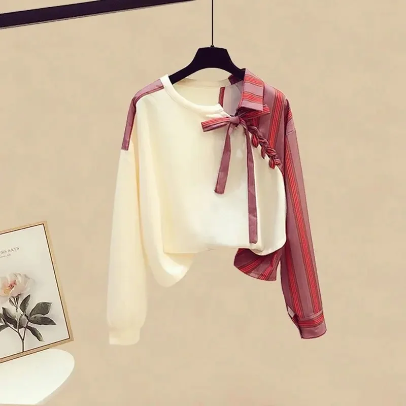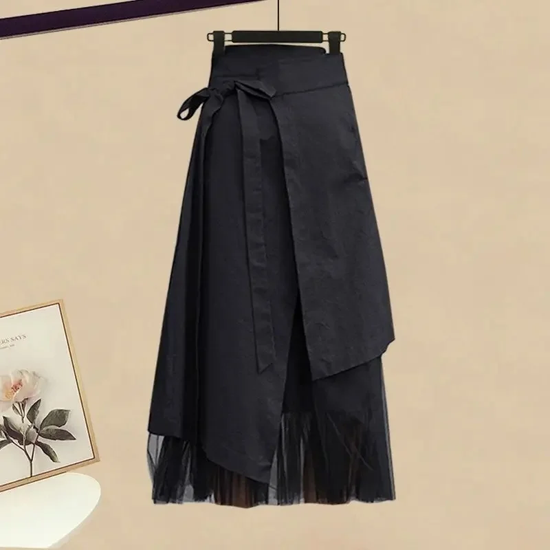 حجم كبير بدلة الربيع النسائية 2024 تصميم جديد قميص التخسيس تنورة عصرية 2 قطعة مجموعة النمط الصيني خزانة التيلة