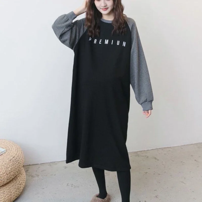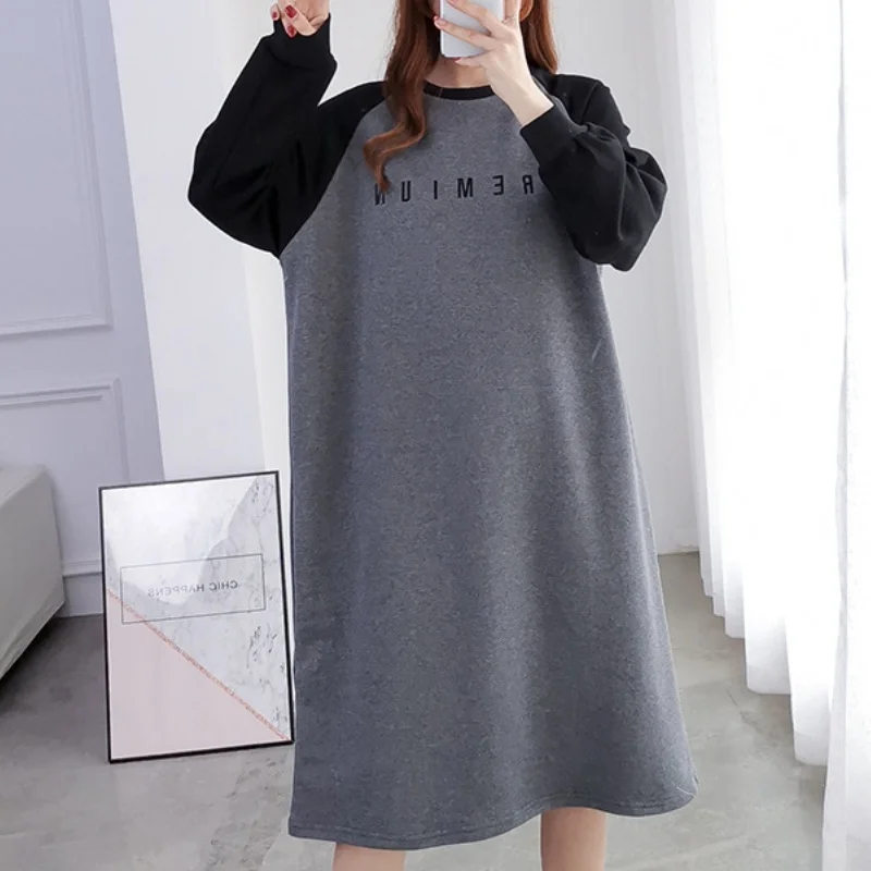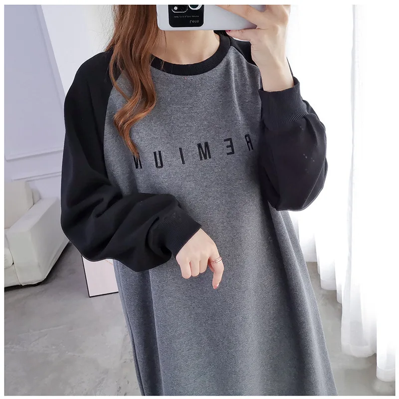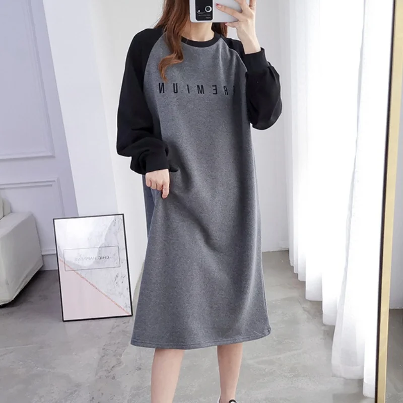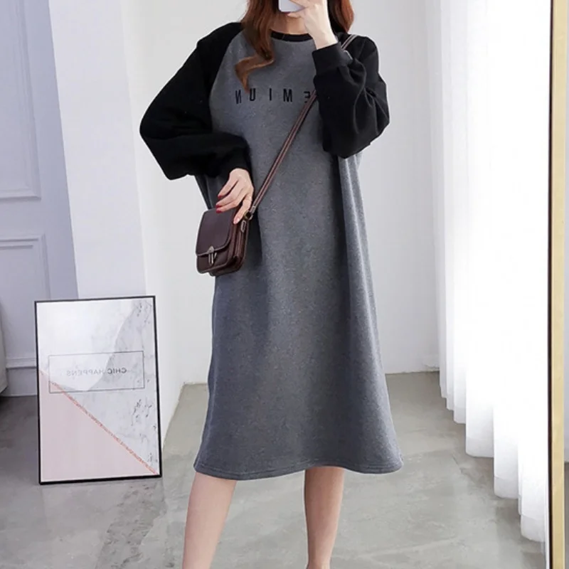فستان نسائي ميدي فضفاض غير رسمي كبير الحجم كوري أنيق مقاس كبير فستان تي شيرت نسائي برقبة دائرية وأكمام طويلة تي شيرت بلوفر ملابس الشارع