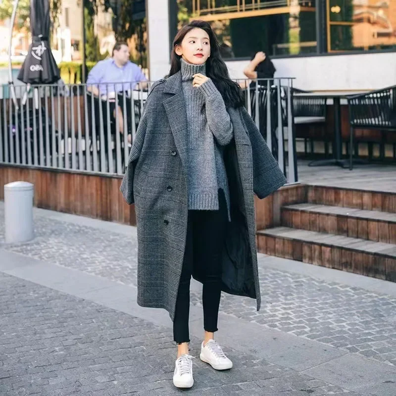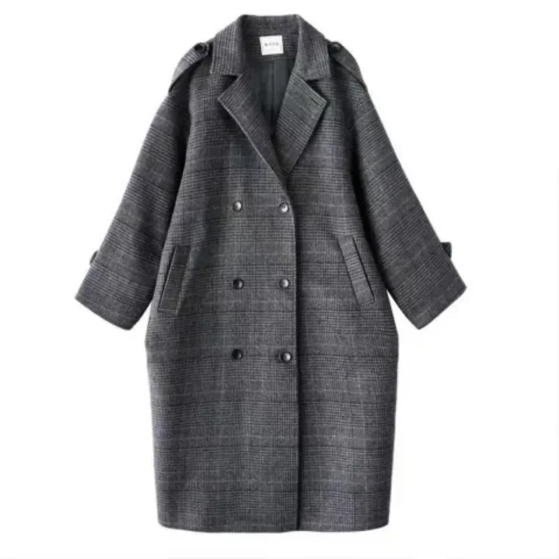 حجم كبير منقوشة تويد معطف المرأة الخريف/الشتاء الخمول نمط سميكة الدافئة الكورية سترة صوفية لينة مبطن معطف سميك