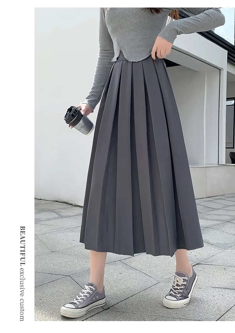 • تنورة على الطراز الكوري على شكل حرف A:مستوحاة من اتجاهات الموضة الكورية، توفر هذه التنورة على شكل حرف A مظهرًا جميلاً وأنيقًا مثاليًا لفصلي الخريف والشتاء.